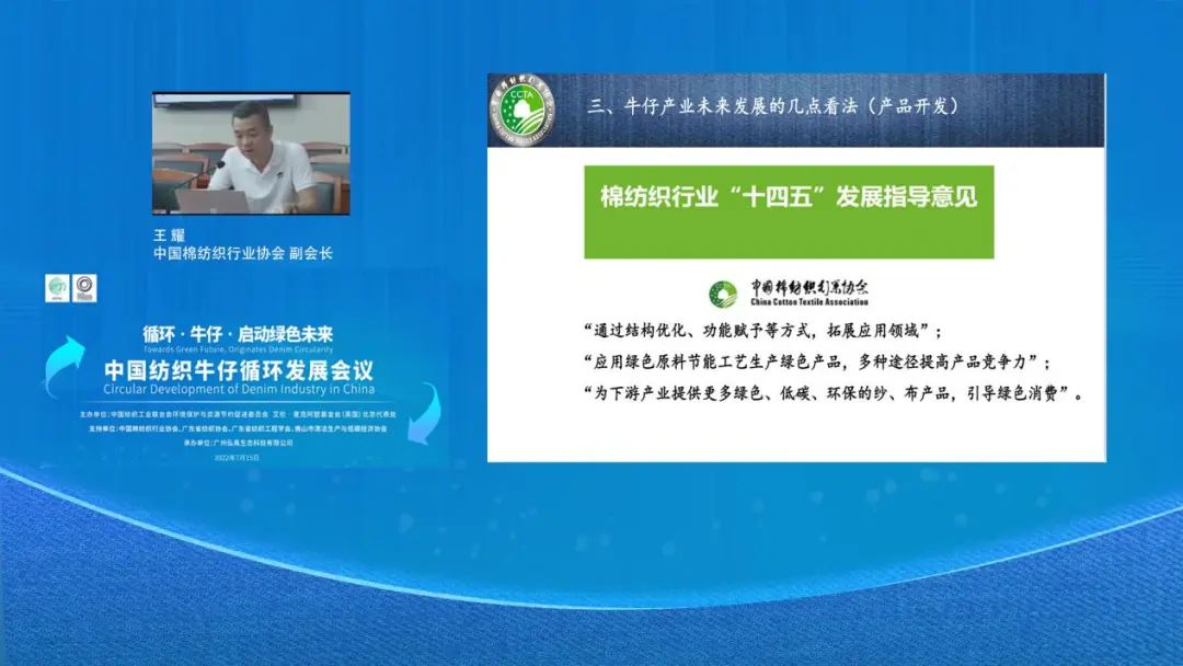 為破解資源環(huán)境約束、應(yīng)對(duì)氣候變化,貫徹《“十四五”循環(huán)經(jīng)濟(jì)發(fā)展規(guī)劃》、《關(guān)于加快推進(jìn)廢舊紡織品循環(huán)利用的實(shí)施意見(jiàn)》等有關(guān)規(guī)定,構(gòu)建資源循環(huán)型產(chǎn)業(yè)體系和廢舊物資循環(huán)利用體系,7月15日,中國(guó)紡織工業(yè)聯(lián)合會(huì)環(huán)境保護(hù)與資源節(jié)約促進(jìn)委員會(huì)攜手艾倫·麥克阿瑟基金會(huì)共同主辦,以“循環(huán)•牛仔•啟動(dòng)綠色未來(lái)”為主題的牛仔循環(huán)發(fā)展線上會(huì)議舉行。