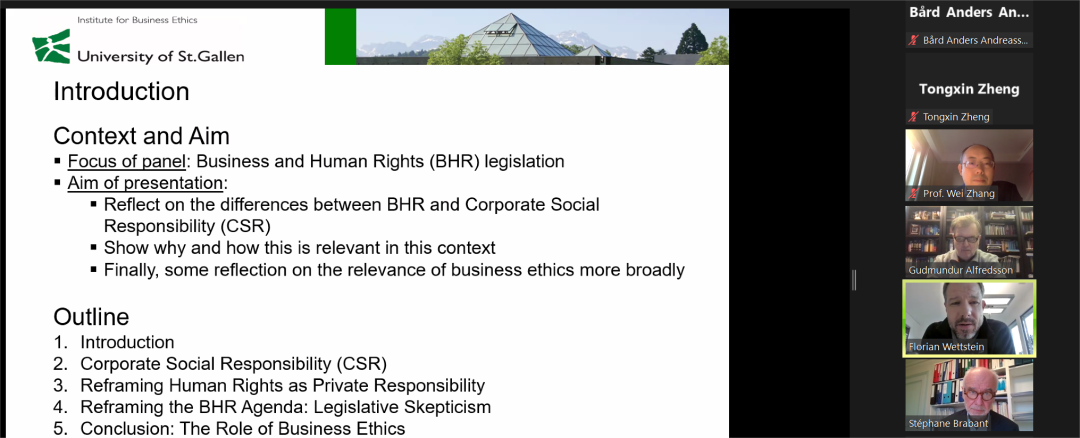 2022年11月20日至21日,由中國政法大學人權研究院、奧斯陸大學挪威人權中心、中國紡織工業聯合會、中國五礦化工進出口商會、南開大學人權研究中心、武漢大學人權研究院、中國互聯網協會聯合舉辦的“2022工商業與人權中國論壇”以線上會議的形式成功召開。來自中國政法大學、南開大學、武漢大學、吉林大學、奧斯陸大學、圣加侖大學、歐盟委員會、丹麥人權中心、加拿大麥吉爾大學、中國五礦化工進出口商會的國內外專家學者、企業經營者、歐盟官員共50余名嘉賓報名參加了本次論壇,圍繞相關主題展開了綜合細致、有點有面的討論。