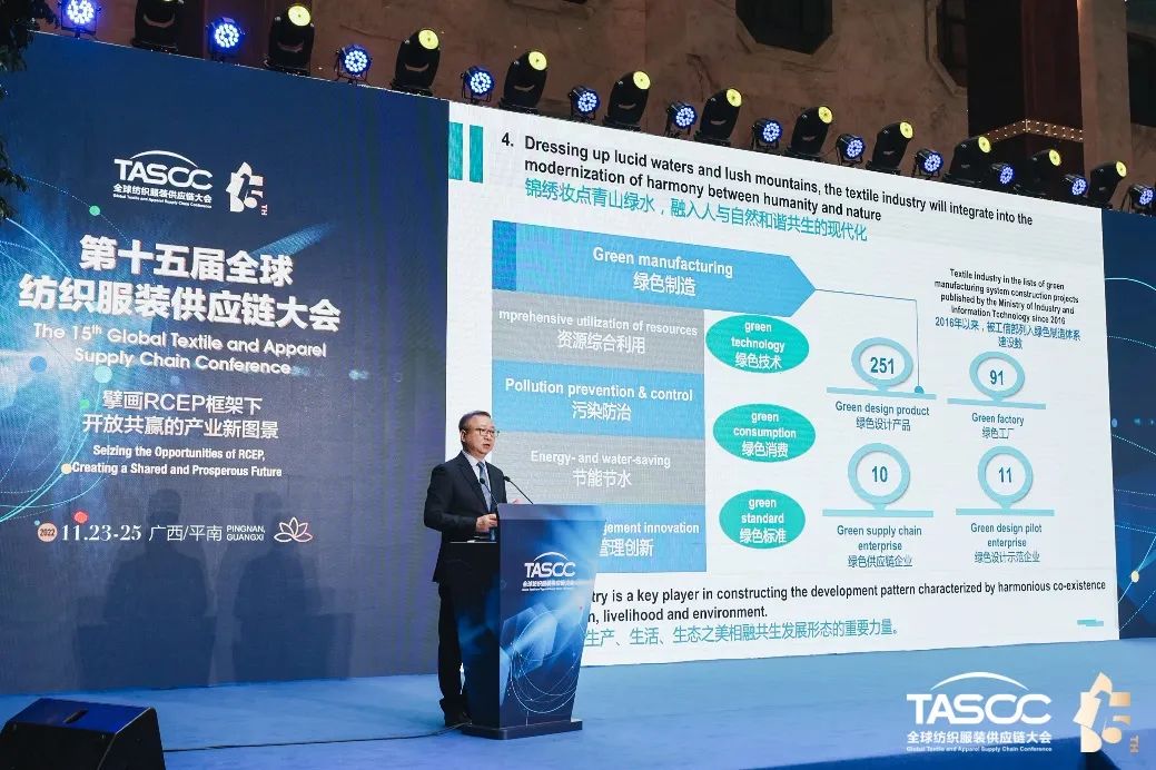 在主題大會上,北京大學國家發展研究院院長姚洋、浙江凌迪數字科技有限公司品牌業態總經理陳圓姝、杭州柚凡信息科技有限公司聯合創始人兼CPO吳伯勇、深圳安奈兒股份有限公司副總裁藍建雄、特思達(北京)紡織檢定有限公司總經理馮昭燕、廣州麥尋品牌運營管理有限公司供應鏈總監孫云龍、亨斯邁紡織染化大中華區市場經理鄒潔、溢達集團創投事業群中國區總監肖風、依文集團副總裁/依文商學院院長溫巍、廣州市匯美時尚集團股份有限公司副總裁/董事曲晶等十位專家人士,從經濟發展、數字供應鏈、可持續發展、柔性供應鏈、傳統文化賦能等多個維度,對“數字驅動與綠色供應鏈”與“時尚引領可持續發展”主題進行了全方位解讀。