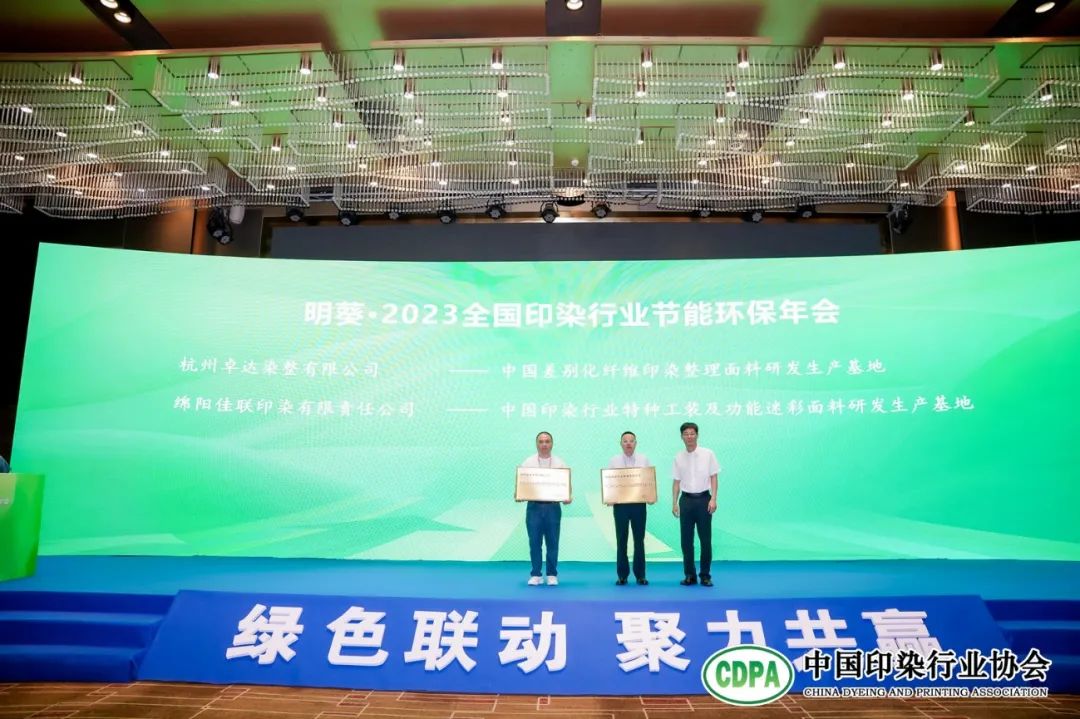 同時,林琳還宣讀了《關于批準杭州卓達染整有限公司等單位繼續作為中國印染行業協會產品研發生產基地的決定》,經有關公司申請、協會研究決定,同意杭州卓達染整有限公司繼續作為“中國差別化纖維印染整理面料研發生產基地”,綿陽佳聯印染有限責任公司繼續作為“中國印染行業特種工裝及功能迷彩面料研發生產基地”,并進行了授牌。