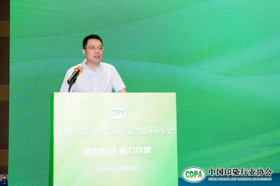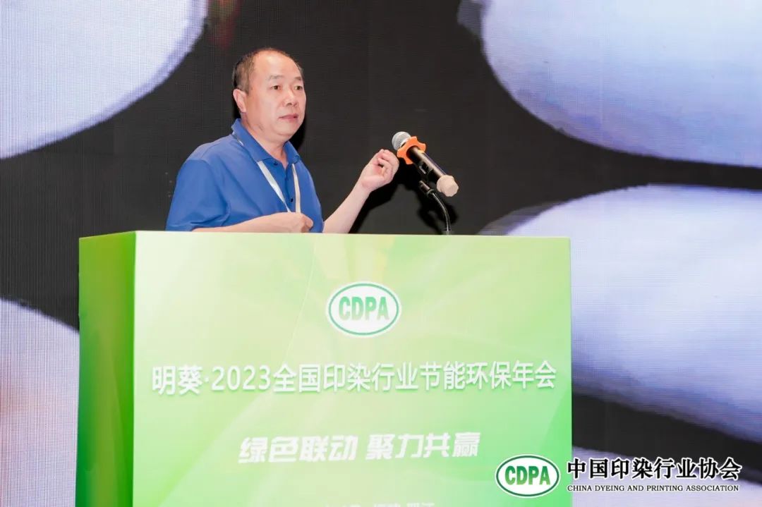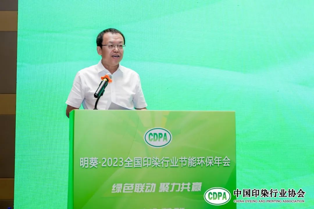 工業和信息化部消費品工業司副處長、二級調研員縱瑞龍在致辭中表示,近年來我國印染行業積極踐行綠色發展理念,能耗水耗不斷降低,綠色化智能化設備得到普及應用,行業發展水平明顯提升,推動綠色發展不斷深入。他指出,目前我國印染行業在節能環保方面還有較大提升空間,必須進一步加快綠色改造:一是要積極穩妥地推進“雙碳”工作,二是全面推進污染防治,三是大力倡導紡織品服裝的綠色消費。