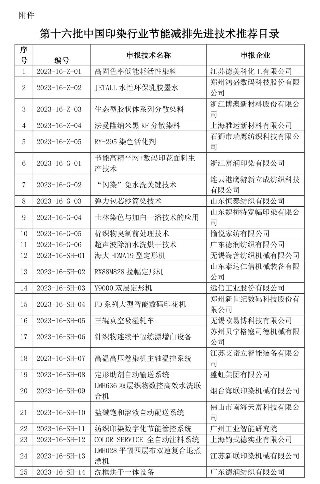 中國印染行業協會副會長兼秘書長林琳宣讀了《關于印發<第十六批中國印染行業節能減排先進技術推薦目錄>的通知》,并為相關企業頒發了證書。此次共推薦節能減排先進技術44項(名單見附件)。