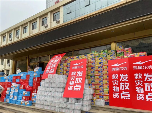 “風(fēng)雨同舟,眾志成城”,鴻星爾克救災(zāi)指揮小組緊急調(diào)動人力物力馳援京津冀災(zāi)區(qū),于救災(zāi)物資發(fā)放點(diǎn)為抗洪救災(zāi)的一線工作者及受災(zāi)群眾發(fā)放食品、飲用水、裝備等應(yīng)急物資。
