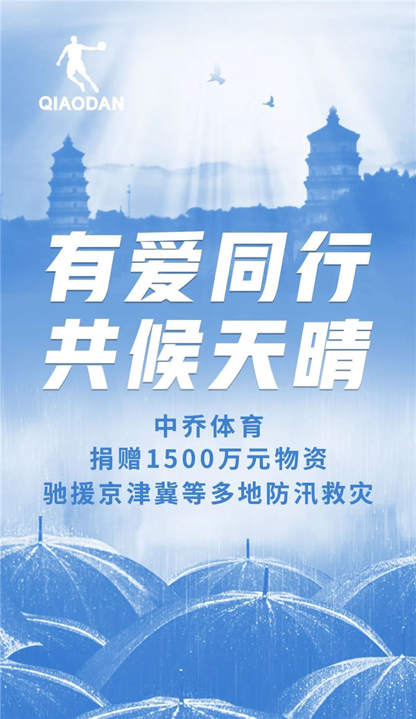 “有愛同行,共候天晴”,中喬體育捐贈1500萬元物資前往京津冀等多地,幫助災(zāi)區(qū)渡過難關(guān)。
