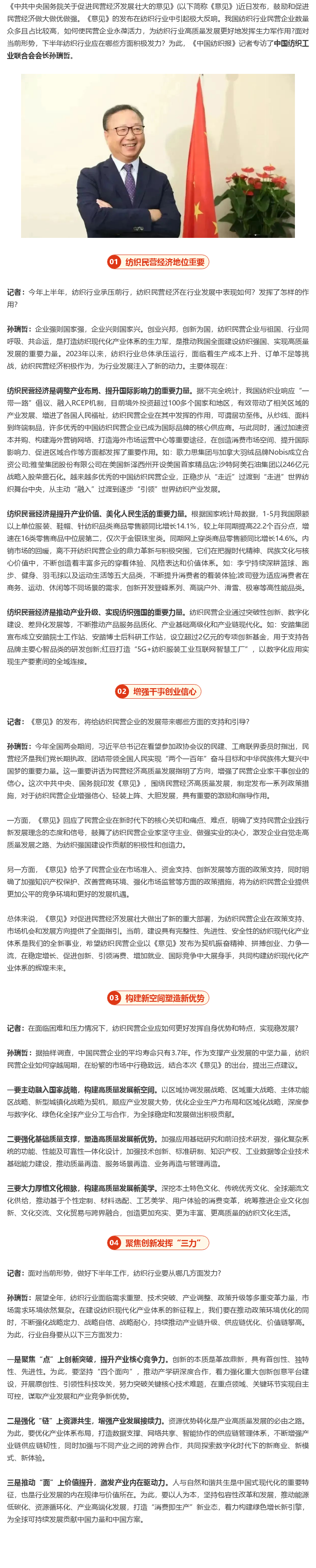 讓紡織民營企業永葆活力!訪中國紡織工業聯合會會長孫瑞哲