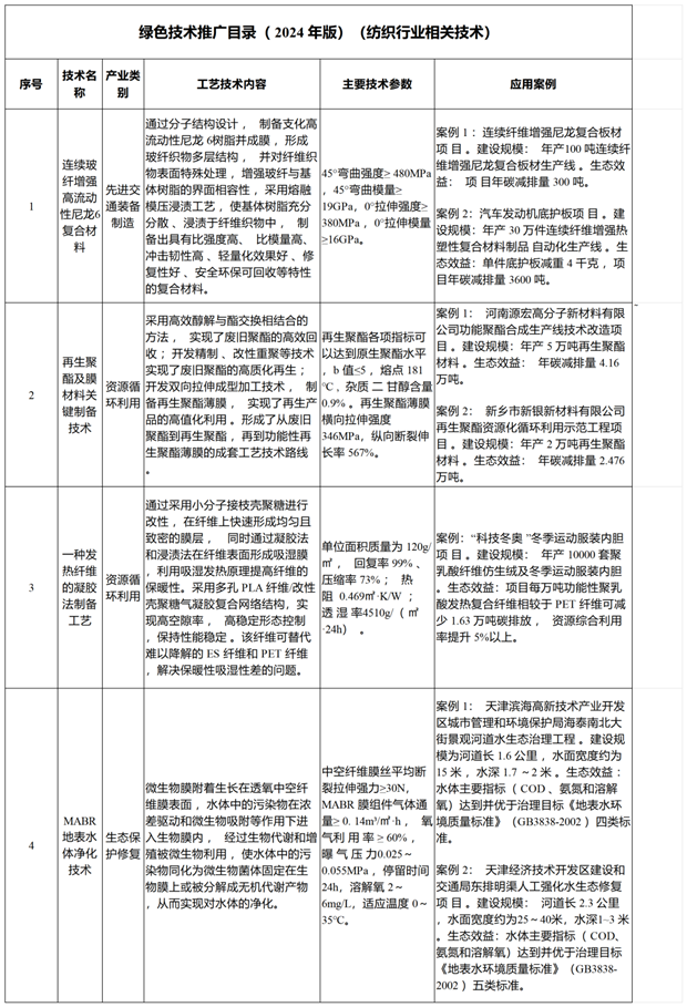 | 紡織行業(yè)四項技術(shù)入選2024年國家綠色技術(shù)推廣目錄 |