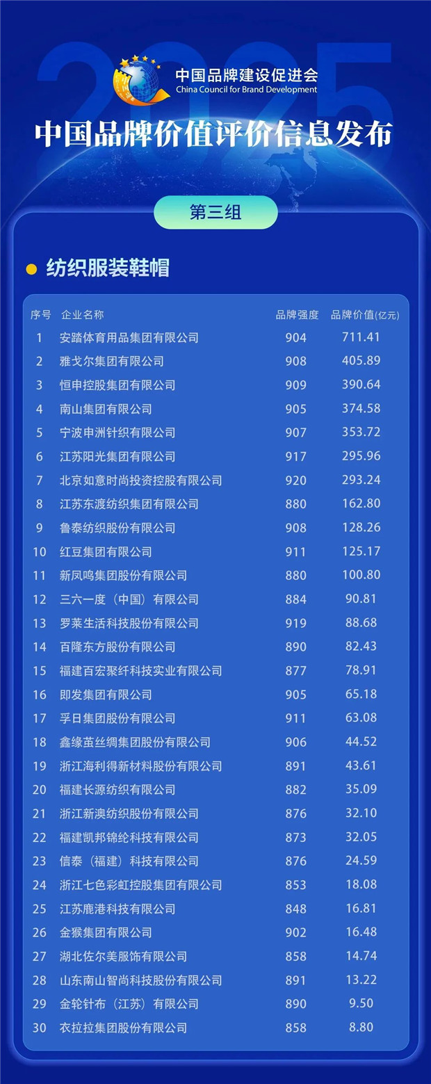 2025中國品牌價值評價信息發布,一批紡織服裝企業上榜