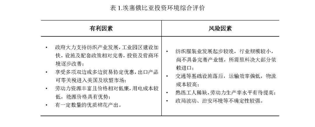 (1)近年來,埃塞俄比亞經濟發展總體較為平穩,營商環境及吸引外資水平均居東非地區首位,政府將紡織服裝業作為國內優先發展的行業之一,積極改善紡織業投資環境及前景;