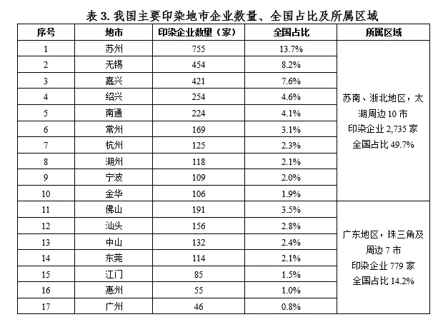 2.3.3印染企業(yè)主要分布在太湖周邊,其次為珠三角周邊