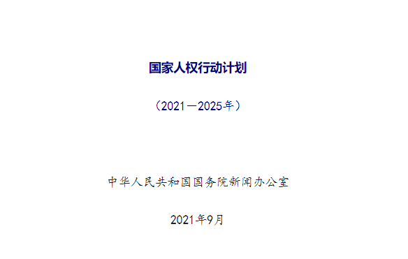 國務(wù)院新聞辦公室9月9日發(fā)布了《國家人權(quán)行動計劃(2021-2025年)》。行動計劃共分導(dǎo)言,經(jīng)濟(jì)、社會和文化權(quán)利,公民權(quán)利和政治權(quán)利,環(huán)境權(quán)利,特定群體權(quán)益保障,人權(quán)教育和研究,參與全球人權(quán)治理,實施、監(jiān)督和評估8個部分。