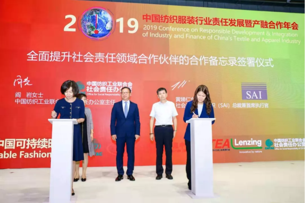 中國紡織工業聯合會社會責任辦公室與美國的社會責任國際組織(SAI)簽署了《關于全面提升社會責任領域伙伴關系的諒解備忘錄》,根據這一合作備忘錄,雙方將共同推動SA8000和CSC9000T的標準合作,包括在中國紡織服裝企業中發展聯合會員,以及增強社會責任合作中國顧問委員會(MAC)的作用,并將通過建立共同負責的供應鏈,促進中美之間更加開放和互利的紡織服裝貿易。