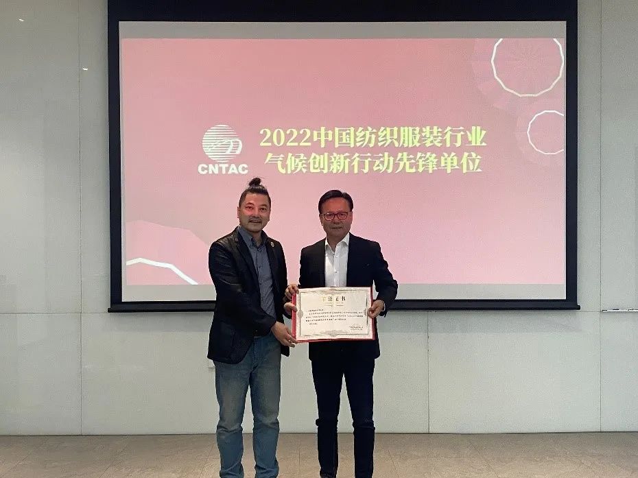 九牧王是全球銷量領(lǐng)先的男褲專家,專注男褲領(lǐng)域33年,在泉州市經(jīng)濟(jì)技術(shù)開(kāi)發(fā)區(qū)清濛園區(qū)與晉江兩地均設(shè)有生產(chǎn)基地,其采用業(yè)務(wù)縱向一體化的模式,是集研發(fā)設(shè)計(jì)、生產(chǎn)、銷售為一體的時(shí)尚產(chǎn)業(yè)公司。作為國(guó)內(nèi)男褲行業(yè)龍頭,九牧王一直是中國(guó)紡織工業(yè)聯(lián)合會(huì)社會(huì)責(zé)任辦公室推動(dòng)行業(yè)可持續(xù)工作的重點(diǎn)合作伙伴。中紡聯(lián)社責(zé)辦于2021年6月1日正式啟動(dòng)了“中國(guó)時(shí)尚品牌氣候創(chuàng)新碳中和加速計(jì)劃”(簡(jiǎn)稱“30·60碳中和加速計(jì)劃”),優(yōu)先支持30家重點(diǎn)品牌企業(yè)和60家重點(diǎn)制造企業(yè)開(kāi)展氣候創(chuàng)新行動(dòng)。對(duì)此,九牧王于2022年3月加入“30·60碳中和加速計(jì)劃”,全面梳理企業(yè)碳排放基線情況,制定九牧王雙碳戰(zhàn)略規(guī)劃。在本次氣候訓(xùn)練營(yíng)中,中紡聯(lián)社責(zé)辦副主任兼可持續(xù)發(fā)展合作部主任胡柯華為九牧王董事長(zhǎng)林聰穎先生頒發(fā)“2022中國(guó)紡織服裝行業(yè)氣候創(chuàng)新行動(dòng)先鋒單位”證書(shū)。