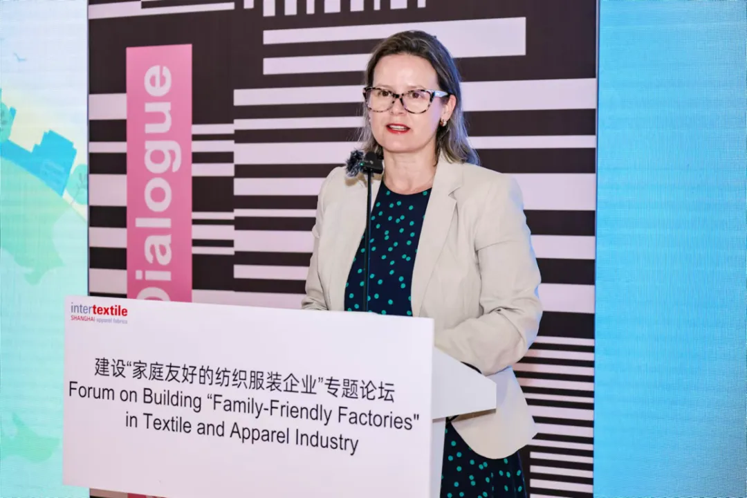 聯合國兒童基金會駐華辦事處合作與創新處處長艾德芙(Derval Usher)表示,自2019年起,中國紡聯與聯合國兒童基金會緊密合作,致力于推動家庭友好型工作場所建設,并于2022年簽訂正式工作計劃。此計劃在中國紡聯會員企業供應鏈中試點,涵蓋工廠實踐、行業指導及宣傳倡導,旨在利用商業力量助力父母平衡工作與育兒。她在發言中還特別強調了兒童早期發展的重要性,倡導性別平等及尊重工人權利,旨在通過多方合作,確保家庭友好政策的可持續實施,特別關注流動就業人員及有殘障兒童家庭的需求。她期待通過分享經驗,推動家庭友好政策的政策倡導、推廣。