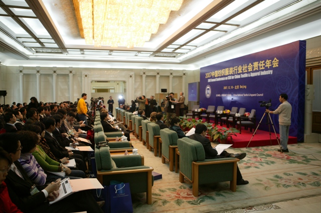 2007年12月18日,中國紡織工業協會在北京人民大會堂召開“2007中國紡織服裝行業社會責任年會”,“以人為本,承擔責任,科學發展”成為本屆年會的主題內容,年會總結了一年來紡織服裝行業大力開展