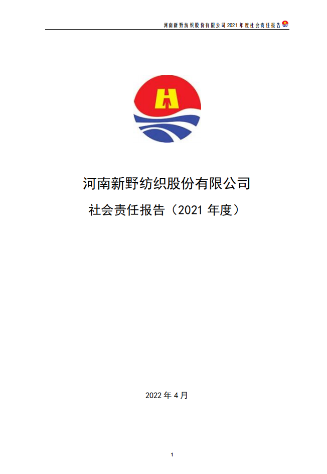 河南新野紡織股份有限公司社會責任報告(2021 年度)