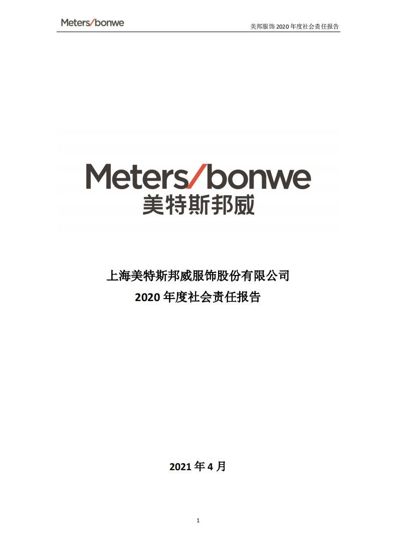 美特斯邦威服飾股份有限公司2020年度社會責(zé)任報告